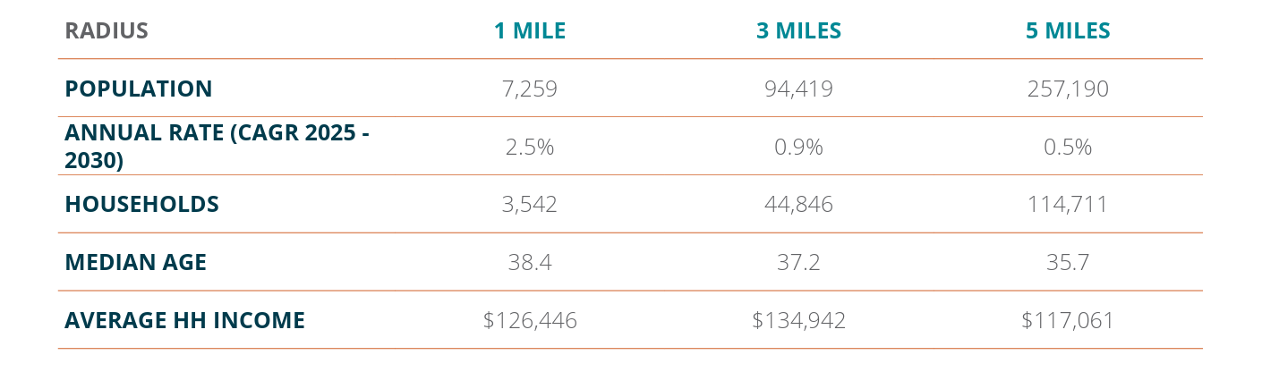 Some recent demographic data is available below (Source: Colliers Hydra 2025)
